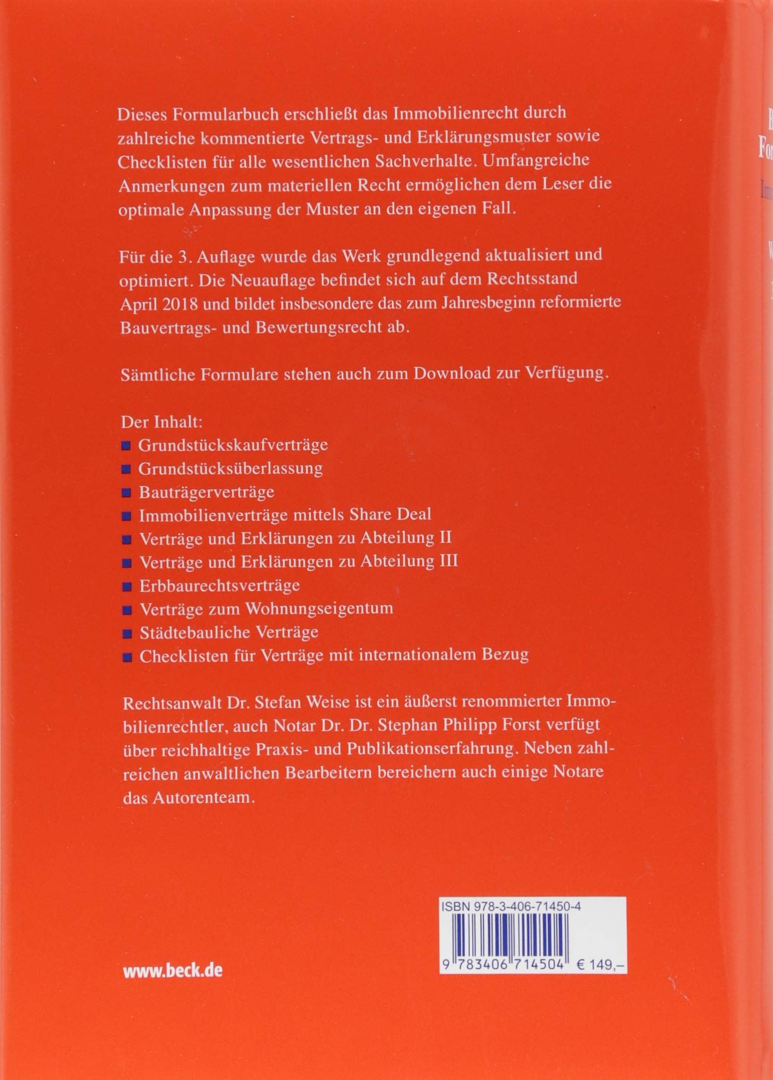 Becksches Formularbuch Immobilienrecht Amazonde Stefan Weise